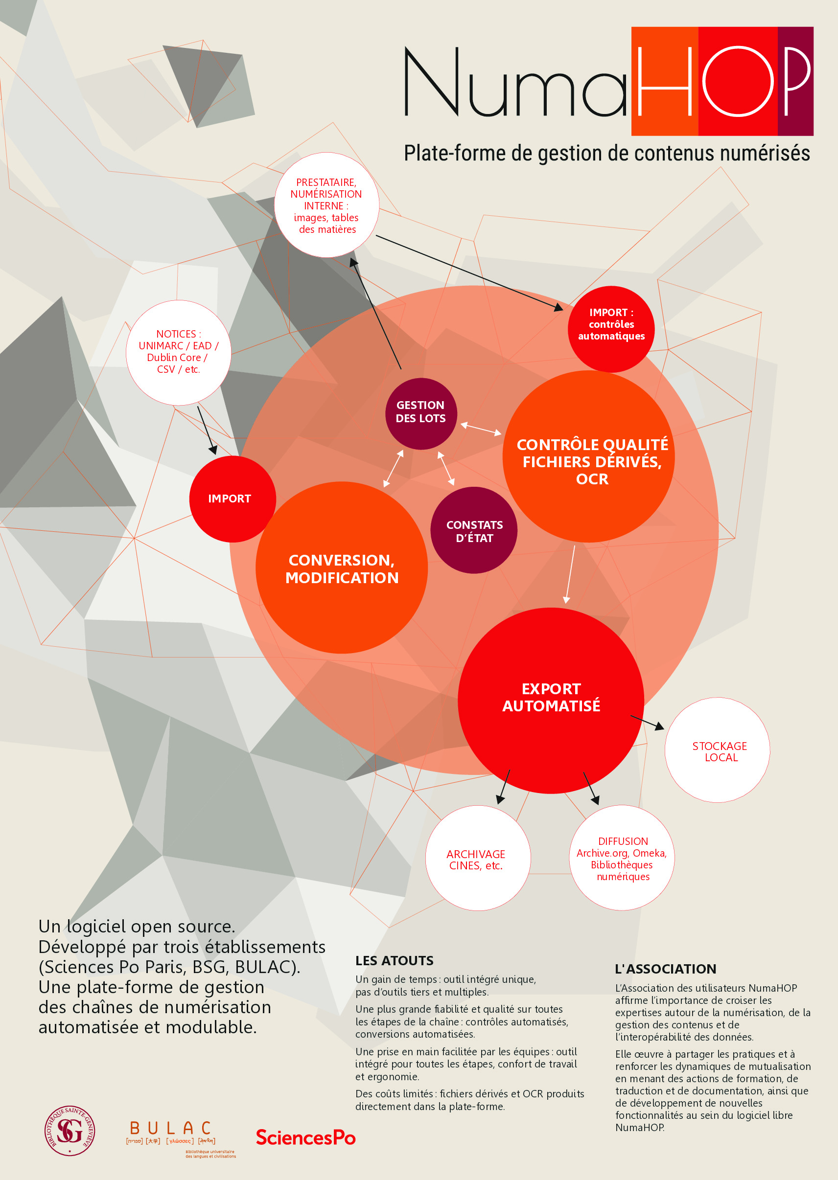 NumaHop est une solution complète pour la gestion de contenus numérisés, spécialement conçue pour les bibliothèques, les archives et les institutions culturelles. NumaHop facilite la numérisation, l'organisation, et la dissémination de vos collections.